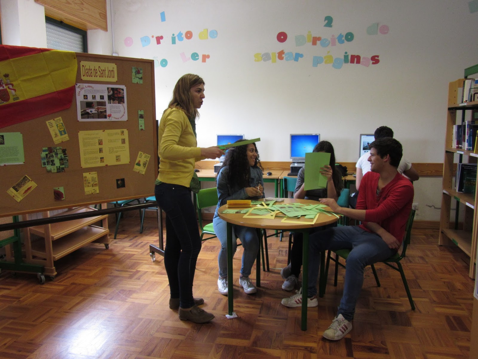 Como tal, os alunos de Espanhol do 9º ano, juntamente com a docente da disciplina, construíram, na Biblioteca da Escola Secundária de Molelos, um painel alusivo ao dia, assim como prepararam alguns marcadores de livros com frases sugestivas relacionadas com a temática e que foram, depois, distribuídos à comunidade escolar.